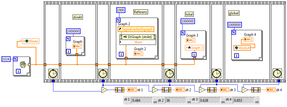 Schneller als die Referenzen sind lokal Variablen, die allerdings nicht in anderen VIs als der Graph sein können.