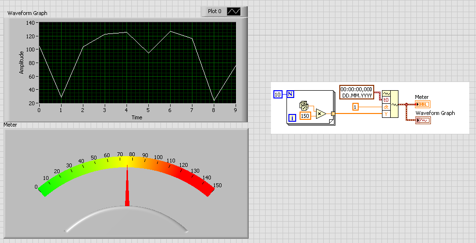 ich habe ein kleines Problem mit der Darstellung eines Messinstruments in meinem VI....und zwar möchte ich lediglich einen kanal messen mit einer eingansspannung von 0 bis 10 V und dies entspricht dann einem volumenstrom von 0 bis 150 l/min. In meinem Graphen wird alles wunderbar anzeigt während der Messung und nur im anzeigemodus. ich hatte allerdings noch ein Drehspulinstrument eingebaut, was ich nun wieder herausgenommen habe, weil es einfach nicht funktioniert hat. Es ist nämlich immer nach jedem Iterationsschritt auf 0 heruntergesprungen wodurch eine anständige anzeige nicht möglich war.
