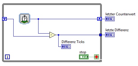 zur Zeit empfange ich Sensordaten über Module in einem CRio und berechne daraus Stellsignale für ebenfalls an das CRio angeschlossene Aktoren. Da ich das analoge Stellsignal des PID-Reglers in ein PWM-Signal wandeln möchte, benötige ich die Dauer, genauer gesagt, die Anzahl der Ticks pro Schleifendurchlauf. Wenn ich einfach die Differenz aus dem Ausgabewert von Tick Count und dem vorangegangenen Ausgabewert von Tick Count nehme, komme ich immer auf 29127,1 Ticks pro Durchlauf. Um herauszufinden welcher Programmteil auf der FPGA zu dieser Verzögerung führt, wollte ich die Laufzeiten einzelner Teile (die sonst parallel ausgeführt werden) mit Tick Count wie oben beschrieben bestimmen und habe mit der Tick-Countfunktion an sich angefangen, da ich dachte, dies sei ein sehr schnell auszuführendes kurzes Programm. Nur dieses liefert mir einen 3 stelligen Millionenwert an Ticks pro Schleifendurchlauf, was bei 40 MHz des FPGA wohl nich sein kann.