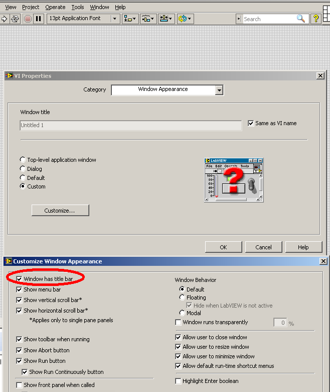 in meinem Applikationsprogramm, sind kein Fensterrahmen in jedem Frontpanel, das ich öffne.