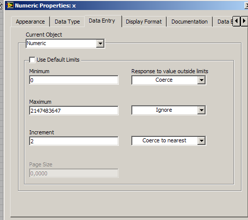 Rechtsklick auf ein "x-"Control im Frontpanel -> Data-Entry, dann folgende Einstellungen vornehmen: