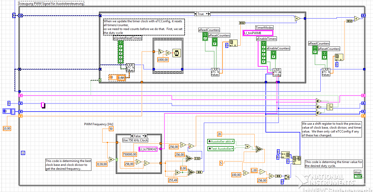 Frage nun: Was muß ich ändern um das PWM Signal auf FIO 1 auszugeben. Vielleicht kann mir auch kurz jemand erklären wie das Beispiel funktioniert. Läuft zwar einwandfrei aber warum ist mir noch nicht klar.