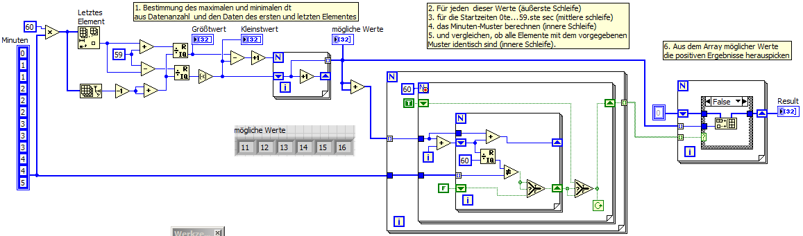 Deine Lösung mit 11s ist richtig! Jetzt muss ich nur noch das VI verstehen lernen (es könnte ja sein, dass das richtige Ergebnis durch einen doppelten Fehler zustandegekommen ist