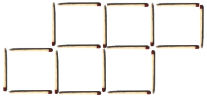 Es sollen zwei Streichhölzer entfernt werden, damit noch vier Quadrate übrig bleiben.
