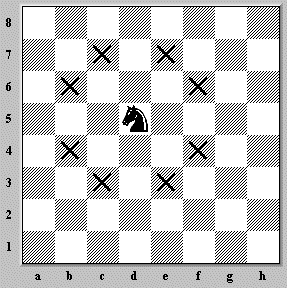 Ein Springer auf dem Schachbrett bedroht maximal acht Felder.