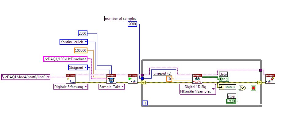 Zitat:Nur deswegen funktioniert auch die Express VI: ich lese 200 000 Samples um mit 100kHz 2s abzudecken.