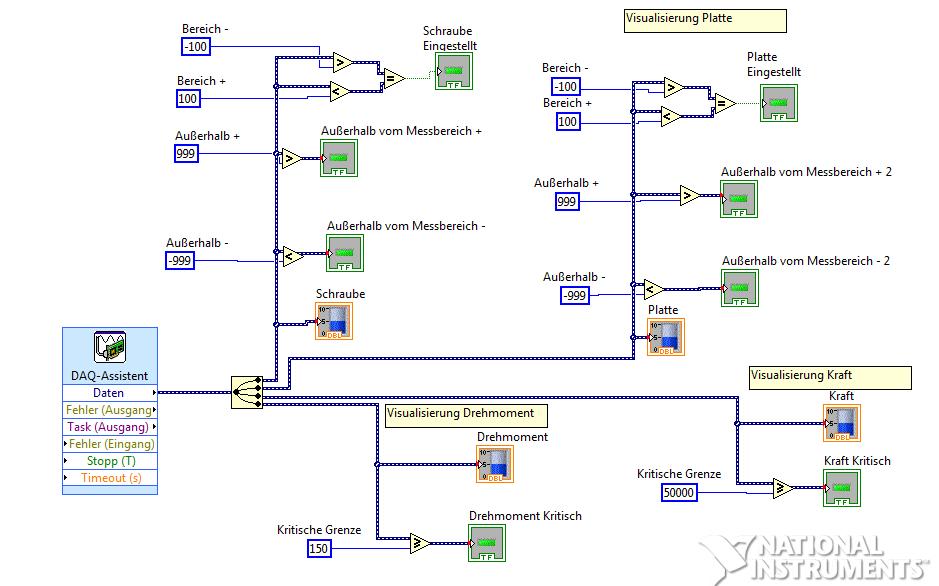 im Rahmen eines Projektes muss ich mehrere Sensoren über einen NI9219 auslesen und darstellen. Als Sensoren sind zwei induktive Wegmesstaster (0-10V) und zwei DMS Sensoren (Kraft und Drehmoment) angeschlossen. Nun kommt es zu folgendem Problem: