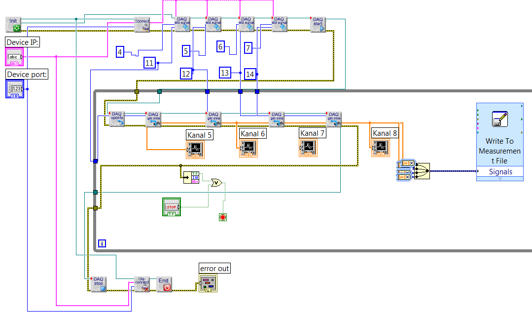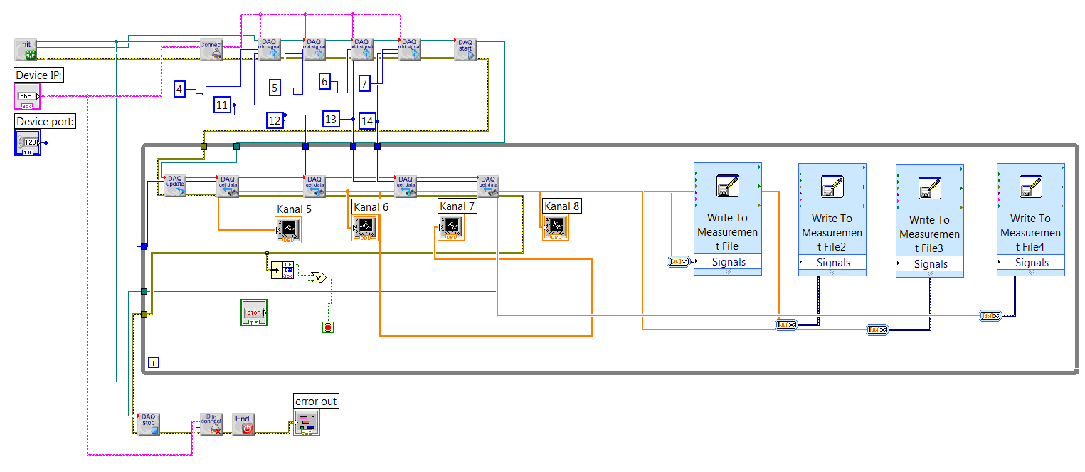 1.) Datenspeicherung aller erfassten Signalen durch erstes VI, das ich hochgeladen habe, funktioniert nicht, weil bei der Datenverarbeitung es zu finden ist, dass eine Datenreihe durch Anderen zu beliebtem Zeitpunkt überschrieben wird.