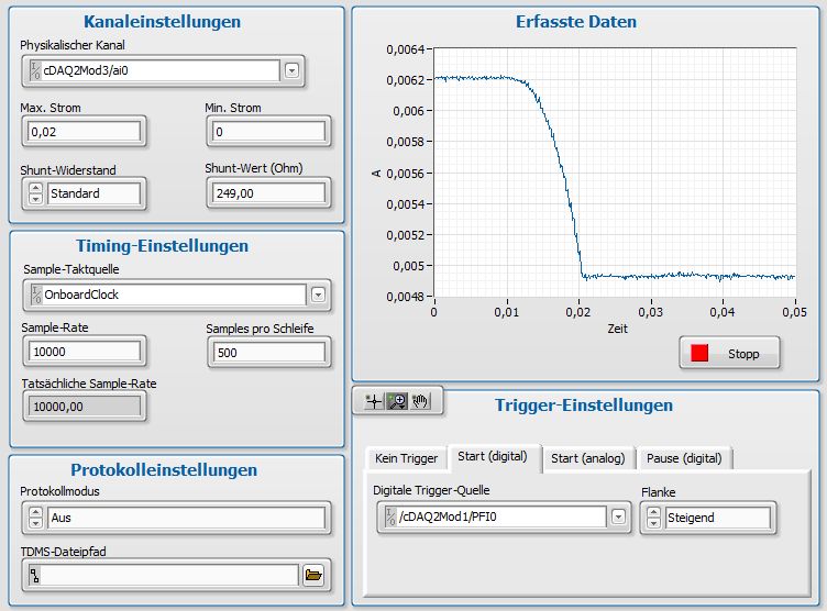 Als Beispielprojekt habe ich "Strom - Kontinuierliche Erfassung" verwendet... in dem Beispiel besteht die Möglichkeit einen Trigger auszuwählen!!