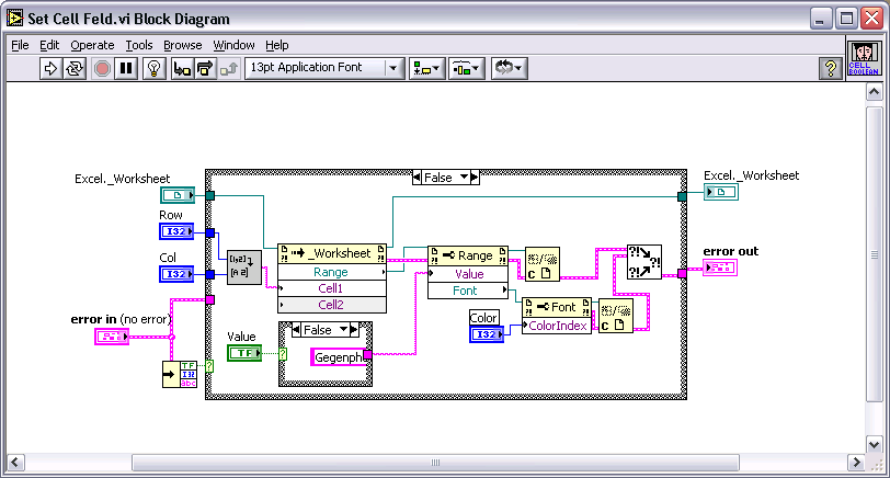 Unter LabVIEW 2014 (Windows 8.1) habe ich aber einen unterbrochenen Pfeil (Fehlermeldung: Type of Source: String, Type of sink: Void):