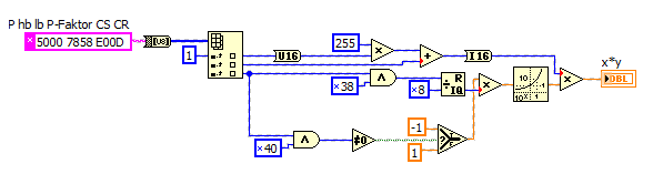 Danke fuer die Hilfe. Das Ergebnis sind 0,077 bar mit meiner Umwandlung, was mit dem Wert ueber das normale WIKA Programm übereinstimmt. Leider verstehe ich deinen Loesungsvorschlag nicht ganz. Also ich brauche ja eigentlich nur eine Umwandlung der Ausgabe in einen Hexastring. Ich habe mich gerade an Format into String versucht, bin aber damit nicht weiter gekommen. Kann man es damit machen? Ich schaue mir jetzt mal die für mich unbekannten Symbole in deinem Programm an