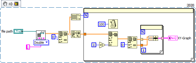 ich probiere nun schon echt seit einer halben Ewigkeit Messdaten aus einer Datei so auszulesen und in eine graphische Darstellung zu bringen, dass es wie eine echte Messung abläuft, bzw. in meinem Fall wie 4 Einzelmessungen. Die erste Schwierigkeit war ja schonmal die Tabelle zu zuerpflücken. Am Gerät wurden bei 4 verschiedenen Temperaturen Viskositäten gemessen mit jeweils 15 Geschwindigkeitsstufen. Die Geschwindigkeitsstufen sind immer die selben, nur die Temperatur wird nach jeder Messung eben angepasst. Jetzt wollte ich eigentlich, dass die Messungen so nach und nach ausgelesen werden. Ich bekomme das einfach nicht auf die Reihe, nichtmal wenn die Tabelle nur eine Messung bei einer Temperatur enthält. Was muss ich denn machen, damit Labview die Tabelle nach und nach einliest, zuerst die niedrigste Temperatur und den Graphen Punkt für Punkt dazu schreibt, dann die nächste Temperatur und so weiter. Geht das überhaupt? Oder muss ich die Tabelle anders aufbauen?