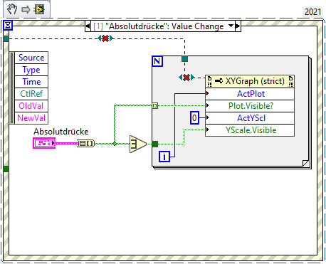 - Erstelle dir einen Eventcase für diese ganzen Buttons zum Auswählen der Plots. In diesem Case kannst du dann die Y-Achsen formatieren - sowas muss nicht noch neben der Eventstruktur in einer weiteren Case-Struktur erledigt werden…