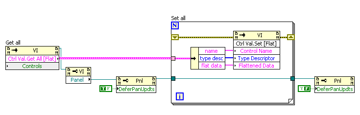 Ich hatte dein VI mal ausprobiert, aber irgendwie ist mir keine Verbesserung aufgefallen. Vielleicht habe ich auch was falsch gemacht. Mir ist die Funktionsweise auch noch nicht ganz klar. Werden hierbei nur Controls gesetzt, deren Werte sich geändert haben? In meiner Applikation vergleiche ich alle Werte aus der Datei mit denen vom Frontpanel, d.h. ich müsste in jedem Fall immer alle Controls durchgehen.