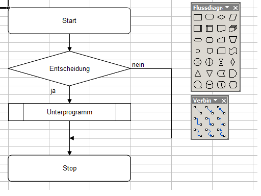 ich finds noch einfacher, da die einzelnen Symbole am Raster ausgeichtet werden können, und die Pfeile bleiben beim verschieben von irgendwelchen Strukturen auch an diesen hängen. In Word hatte ich bisher immer Probleme