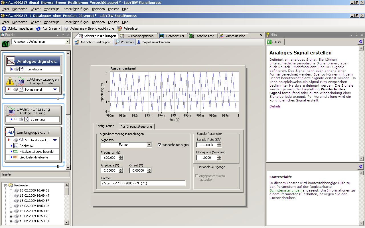 meine Versuchsreihe benötigt einen Sweep - da ich nicht meinen Datalogger NI USB 6251 mit einen externen Funktionsgenerator belasten möchte, habe ich vor einen Sweep mit SignalExpress zu erstellen.