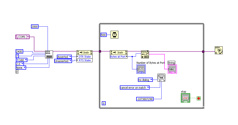 So bald ich das Gerät einschlte welches beim start eine Zeichenkette sendet und diese lesen will erhalte ich auch diesen Fehler! Ich erhalte einfach den Fehler -1073807298!