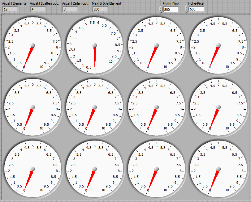 ' schrieb:Was mich jedoch noch stört ist die Tatsache das LabVIEW mit der Skalierung der Anzeigen nicht ganz klar kommt und nach wenigen Durchläufen sowas wie im Bild entsteht.Kann ich nicht nachvollziehen, bie mir sind die Anzeigen immer OK und sehen so aus: