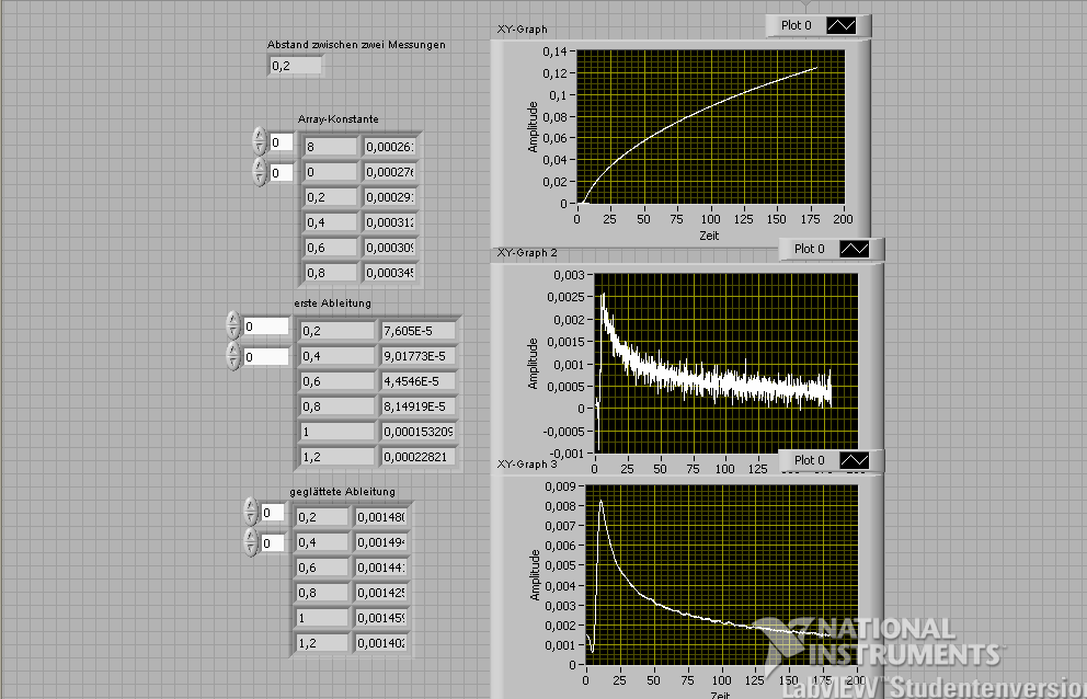 Ich habe noch mal das gleich vi vom ersten posting angehängt, diesmal mit einer anderen array-Konstante, eine die halt den Fehler macht (siehe auch screenshot). Hier liegt das MAximum der ersten Ableitung bei 0,0025 und bei der geglätteten Version bei 0,008 und das ist ja nun nicht unerheblich.