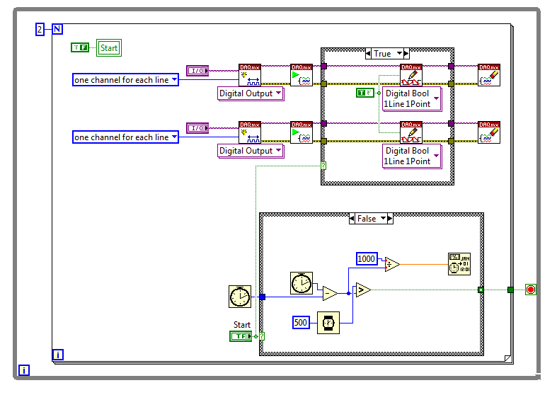 - Wozu die Case-Struktur um die DO-Funktion? Die beiden Cases unterscheiden sich einzig in der boolschen Konstanten - und die wiederum hat den gleichen Wert wie der Case-Selektor! Du könntest also "Start" direkt mit den DOs verbinden und bräuchtest die Case-Struktur nicht...