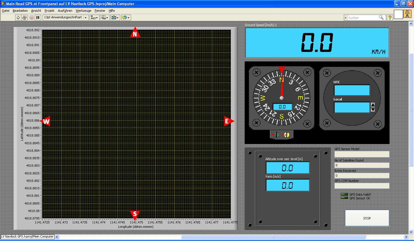vielen Dank erst einmal für die doch recht fruchtbaren Antworten. An dieser Stelle etwas mehr zu meinem Projekt. Ich bin absolut flugbegeistert, mache Modellbau, habe mit einem Freund schon ein UL-Flieger gebaut und dadurch ich dienstlich bedingt auch recht oft im Flieger unterwegs bin stört es mich (oder interessiert mich) was gerade so flugtechnisch abgeht. Also Flughöhe, Kurs, Geschwindigkeit, Steig-/Sinkrate und aktuelle Position. Da ich nun manchmal etwas perfektionistisch veranlagt bin, müssen also die Daten so visualisiert werden wie im richtigen Cockpit, also Cockpit second set up in der z.B. Reihe 23. Die Anzeigeelemente sollten also so autentisch wie nur eben in LabVIEW möglich erstellt werden. Also von euren bisherigen Antworten habe ich schon eine Menge lernen und in meinem Programm umsetzen können. Ach ja, zur Signalgenerierung nutze ich einen GPS NAVILOCK NL-402 USB Sensor. Funktioniert super im Flieger, solange man am Fenster sitzt und nicht von den Stewadessen erwischt wird ;-)) ... Vielen Dank.