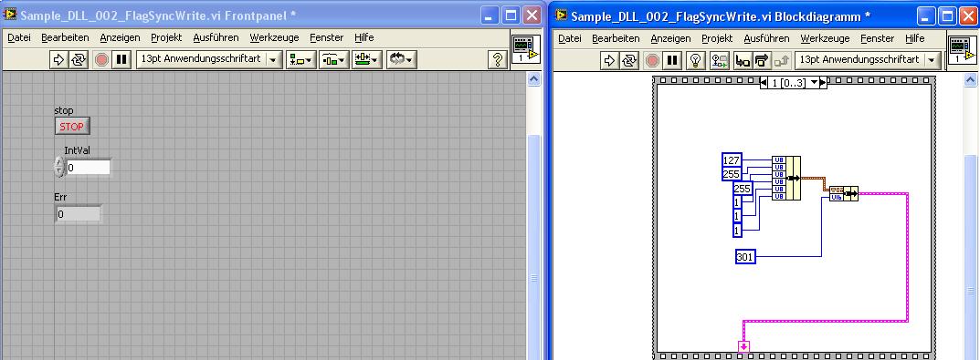 3. Das LV-Programm laufen lassen und den "IntValue" auf 1 gesetzt.