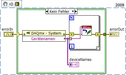 Der dynamische Aufruf klappt in der Regel aus der Entwicklungsumgebung immer, in der runtime aber nur, wenn ich bestimmte VIs rausnehme wie das DAQmx zurücksetzen im Beispiel.
