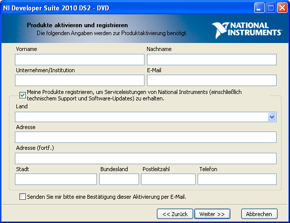 Upgrade auf LabVIEW 2010 - Produktaktivierung