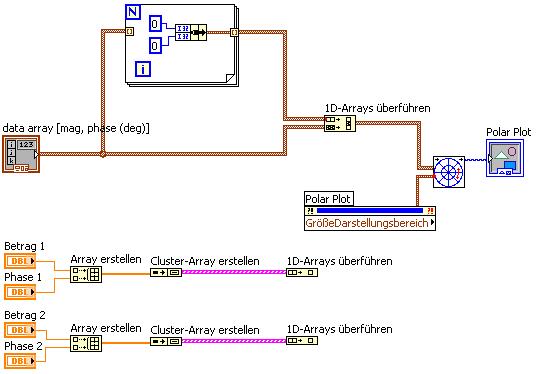 Hallo Lucki. Das Beispiel von dir funktioniert so weit auch für mehrere Vektoren. Danke für die Hilfe. Das Problem jetzt besteht darin, dass die Phase und der Betrag bereits als ermittelte Werte vorliegen. Wie kann ich mit diesem Datenarray meine lokalen Variablen verknüpfen?. Ich brauche also für jeden Datenwert einen separaten Eingang.