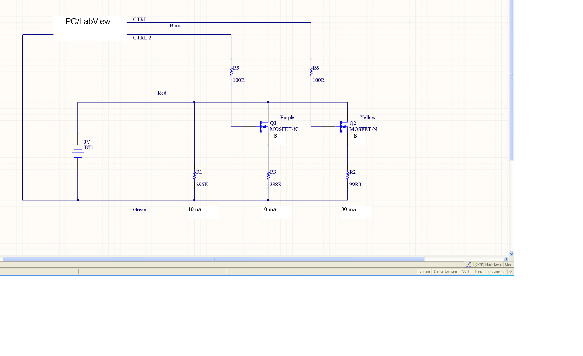 Die Schaltung habe ich als Bild angehaengt. Die CTRL1 und CTRL2 Eingaenge sollen die zwei MOSFETS ein und auschalten. Und ich will die Spannung an der Batterie BT1 messen. Ich will die Batterielaufzeit testen.