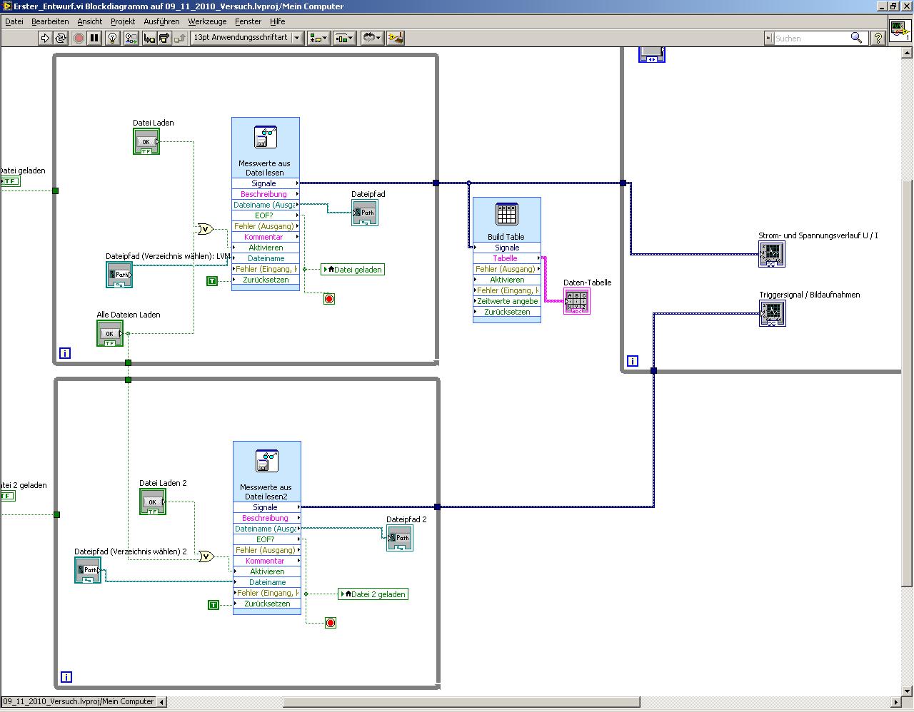 Das zweite Problem war die entsprechende Relativzeit in die Tabelle zu bekommen, ich hab deshalb auch noch mal einen Screenshot von meinem bisherigen Blockdiagramm gemacht.