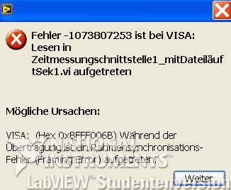Der Fehler kommt aus der VISA-Kommunikation, ich bezweifle, dass er ursächlich mit einen parallelen Datenspeicherung zusammenhängt.