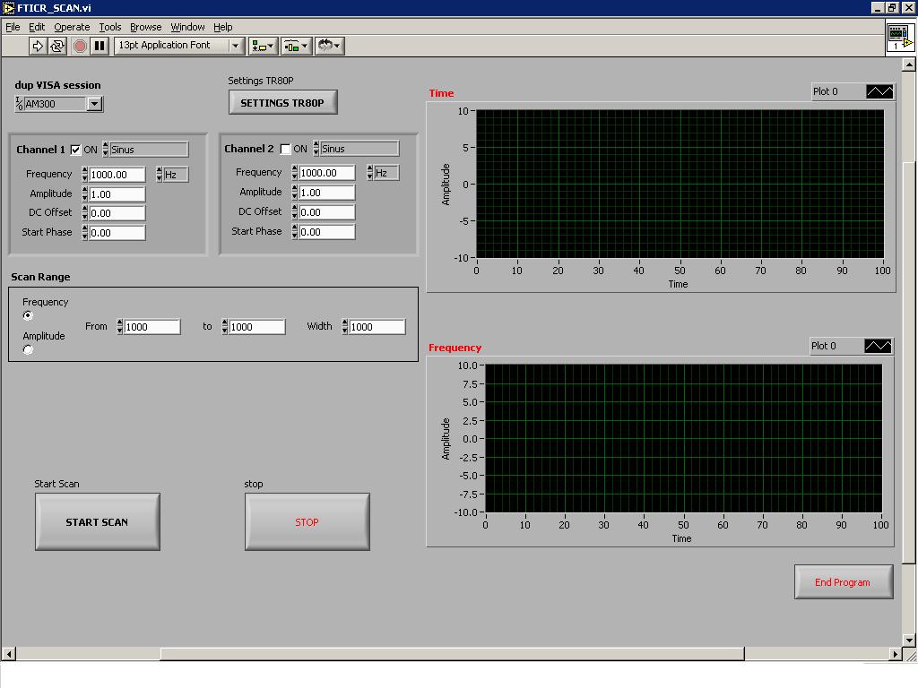 Folgende Aufgabenstellung in Kurzfassung. Ich habe einen AFG und einen Transientenrecorder. Damit 2 unterschiedliche Geräte. Das Programm soll es für den Benutzer ermöglichen einen Frequenzscan bzw. Amplitudescan zum realisieren. D.h. der AFG gibt eine Sinus mit Frequenz, Amplitude und Phase vor, dann wird der Transientenrecorder ausgelesen (Messsignal entspricht einem Zeitsignal). Anschließend soll eine Fouriertransformation vorgenommen werden. Und dieser Algorithmus halt in einem vorgegebenen Intervall duchlaufend.