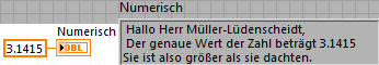Den Fettdruck habe ich nachträglich am Ausgabestring gemacht, der scheint sich zu halten, wenn man den Text im Anzeigelement als Standard abspeichert. Aber ob das allgemein geht, den Text im Ausgabestring Zeichen für Zeichen beliebig zu formatieren, das weiß ich nicht.