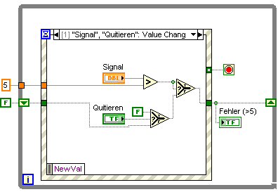 Ich wollte nun eigentlich so eine Struktur daraus machen, die ein paar Millisekunden auf ein Event wartet oder ein Drücken des Quittieren-Knopfs wartet und wenn nichts passiert die alten Werte, bzw. hier die anliegenden Störungen übernimmt.