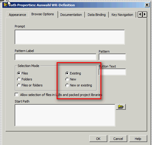 Könnte es sein, dass du ein Path-Control auf dem FP liegen hast? Und dass du den Speicherpfad über den "Browse-Button" dieses Path-Control auswählst?