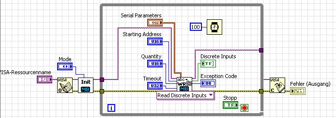 für mein labview8.6 habe ich die modbus-bibliothek installiert und bin nun am try-and-failure-n, wie ich das VI denn aufbauen muss, damit's die daten erstmal empfängt.