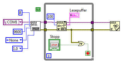 Nun passiert folgendes wenn ich die Datenauslesen VI starte.