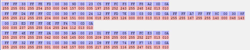 Mein Bitstream sieht so aus: WertWertWertWertWertWertCRLFWertWertWertWertWertWertCRLF
