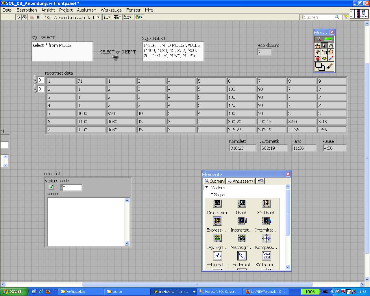 Ist ja die Funktion "Bruch-/Exponential-String nach Zahl" und ich hatte ursprünglich mal "in String suchen" verwendet. Da weiß ich wie die Umwandlung läuft. Die kann ich aber nicht an ein 2D-Array von Strings anschließen.