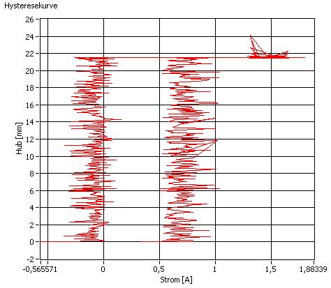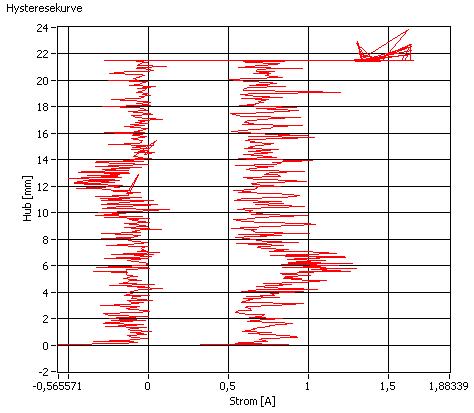 Sehr gut, denn genau das ist ja was ich will Wink Also die hochfrequenten Schwankungen ausbügeln, damit ich Ausbrüche, wie in Diagramm 2 gezeigt, besser registrieren kann. Diese Ausbrüche in der Hysteresekurve kamen zustande, indem ich einfach händisch einen Wiederstand auf die ein- bzw. ausfahrende Spindel draufgegeben habe. Dadurch kam es zu einem Stromanstieg. Später soll dann ein Toleranzband diese Ausbrüche erkennen und eine Fehlermeldung ausgeben. Wie das geschehen soll weiß ich jetzt noch nicht.