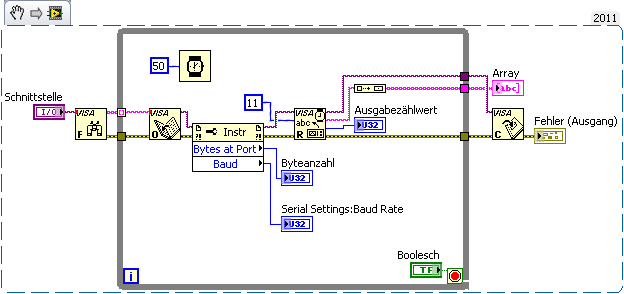 - Du nutzt eine While-Schleife mit autoindizierendem Eingang. Je nachdem, wieviele Devices bei dir über VISA verwaltet werden, ist also nach evtl. 200ms nichts sinnvolles mehr vom VI zu erwarten.