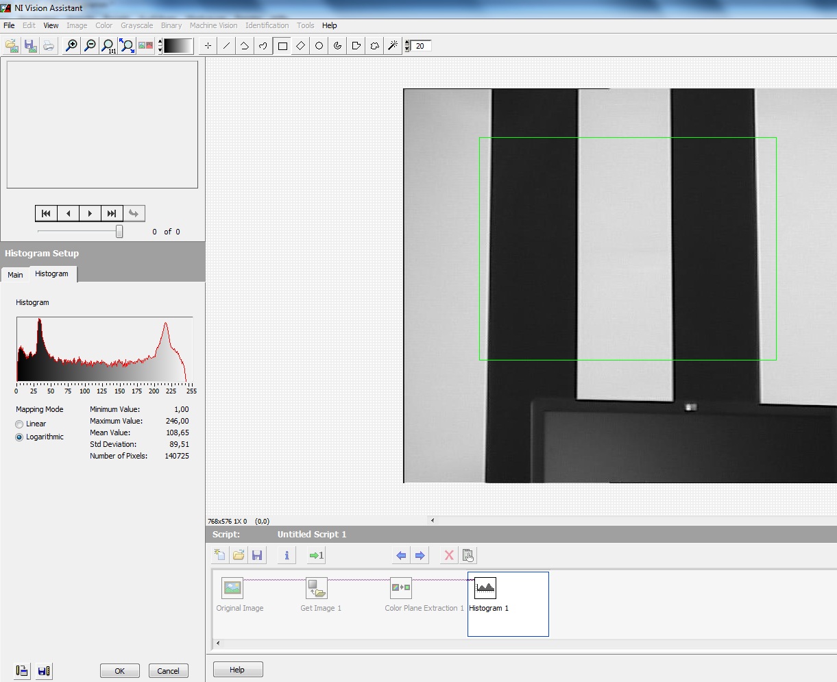Ich habe alles soweit in den Vision Assistant reingeklickt und funktioniert auch, also mir wird ein Histogramm angezeigt.