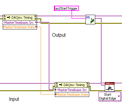 auf deinem Screenshot hast du am AI den Starttrigger generiert. Wenn du AO als Master nehmen willst, so habe ich es, dann musst du auf dem AO den Starttrigger mit ao/startrigger generieren und den Task als Digiflanke für AI nehmen.