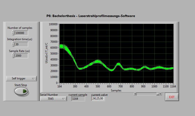 Was nun meine Aufgabe ist, ist, dass ich ich beispielsweise mit meiner erweiterten Software die Lichtintensität einer Quelle messe, zB. 100 Messungen (=Samplerate), und anschliessend der Mittelwert dieser hundert Messungen berechnet wird und in einer weiteren Graphik eintragen wird, und dies für diverse Lichtintensitäten.