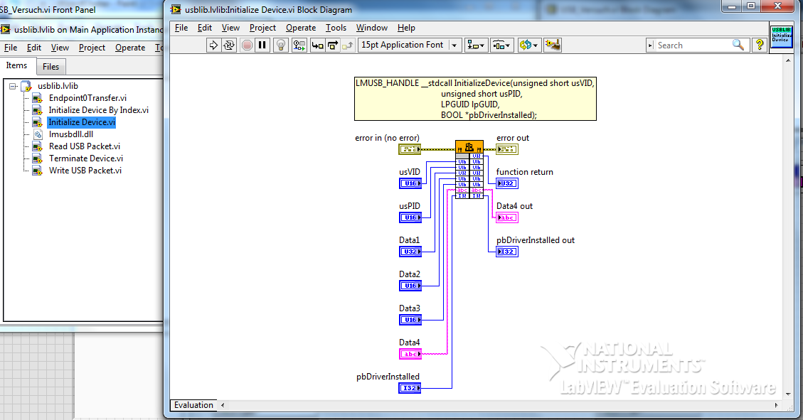 Sind die Datentypen für Handler und die Übergabe der Parameter im richtigen Format für LabVIEW? Oder muss ich Vielleicht sogar komplett anders vorgehen um die richtige Funktionalität zu erhalten.