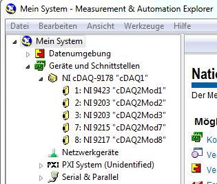 Zitat:In meinem Fall werden Stromeingänge (über NI 9203) und Spannungseingänge (über NI 9215), die in einem cDAQ-9178 in stecken zusammen auf einen Task gelegt.