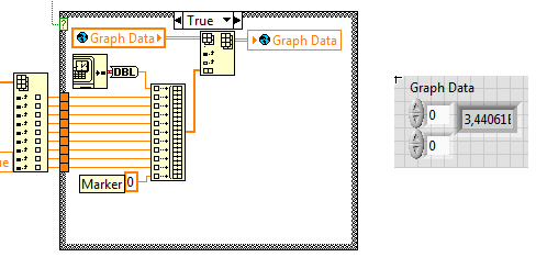 im Moment hänge ich mal wieder an einem wahrscheinlich ganz einfachen Problem. Es geht darum ein Array mit vielen Messdaten in einem XY-Graph darzustellen. Das Array mit den Messdaten "GraphData" hat 10 Spalten, Spalte0 ist Datum/Zeit, Spalte 1-8 sind die 8 Messwerte, Spalte9 dient zur Speicherung von Markern.
