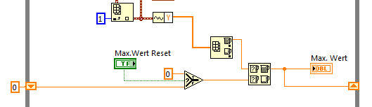 Wenn du den Maximalwert der Messung auf null setzen willst, dann musst du wohl oder übel die Messung (das Array) leeren (sonst ist das Maximum ja nicht null). Dazu ebenfalls Funktion "Auswählen" in Konjunktion mit Rückkopplung.