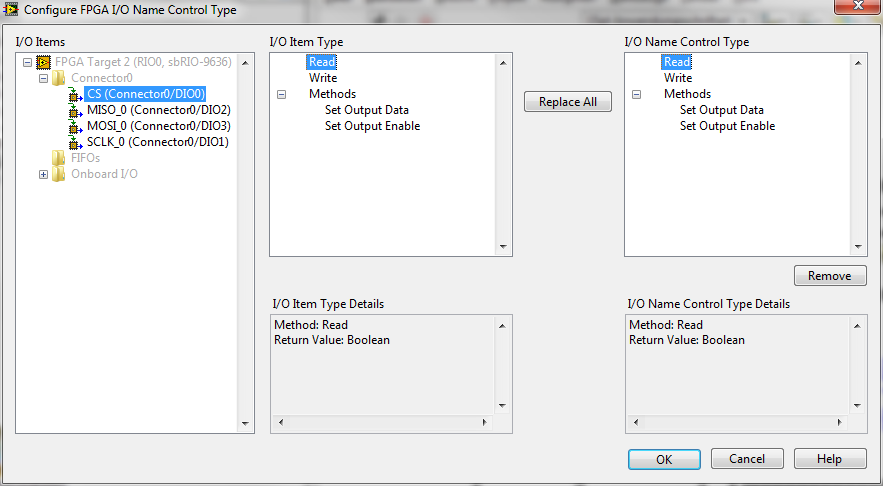 Zitat:The IO of the Single-Board RIO device in the example project will not be the same as the IO types on the R Series board. Specifically, the IO lines have different properties and methods associated with them and the PORTs of an sbRIO are 10 bits wide while the R Series ports are 8 bits. To rectify this: